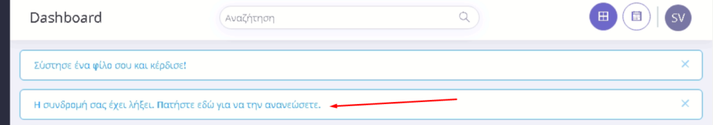 Μόλις κάνετε είσοδο στο πρόγραμμα θα δείτε το παρακάτω μήνυμα. Πατάτε επάνω στην ειδοποίηση.