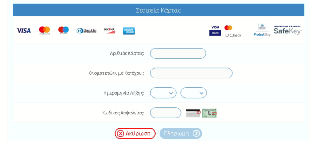 Στο τελευταίο βήμα συμπληρώνετε τα στοιχεία της κάρτας σας εάν επιλέξατε τρόπο πληρωμής κάρτα.