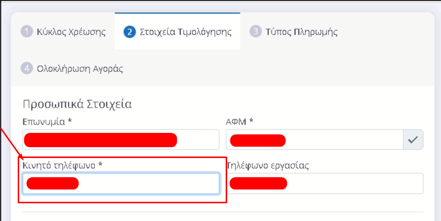 Στο επόμενο βήμα συμπληρώνετε το κινητό σας και πηγαίνετε κάτω στο κουμπί Επόμενο