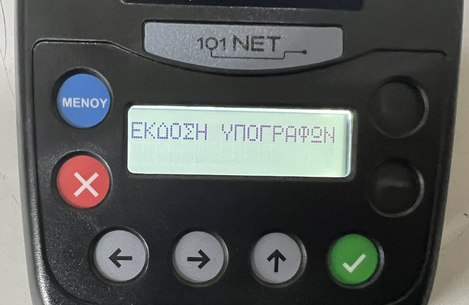 Περιμένουμε λίγο μέχρι να δείχνει στην οθόνη του ο φορολογικός μηχανισμός το μήνυμα ΕΚΔΟΣΗ ΥΠΟΓΡΑΦΩΝ