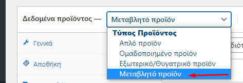Αρχικά επιλέγουμε μεταβλητό προϊόν.