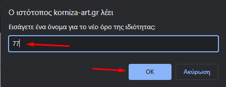Έπειτα στην οθόνη που εμφανίζεται εισάγουμε την τιμή και πατάμε το κουμπί ΟΚ.