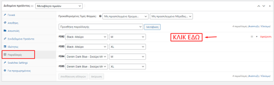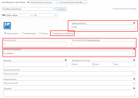 Μπορούμε να αλλάξουμε την τιμή, τον κωδικό προϊόντος, το απόθεμα και γενικά όλες τις επιλογές που μας δίνει για τον συγκεκριμένο συνδυασμό.