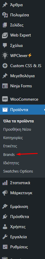 Επιλέγουμε από του μενού του των προϊόντων το Brands