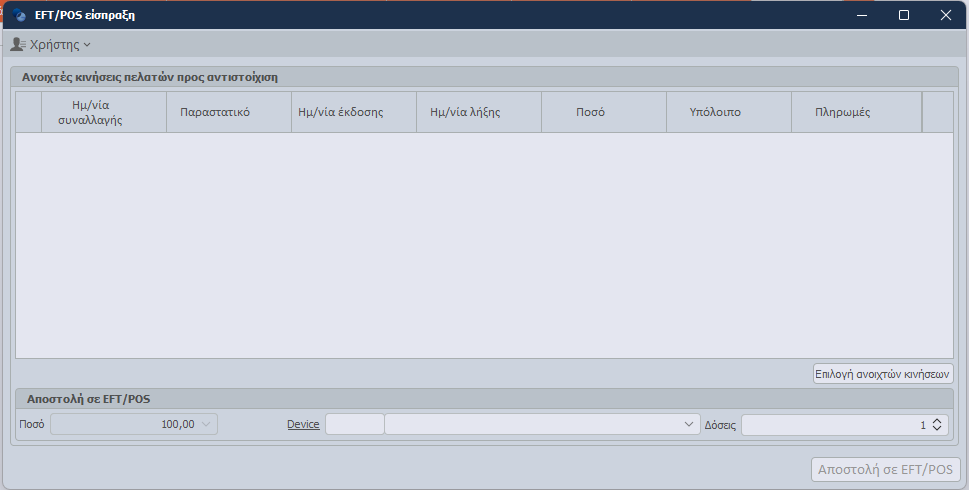 Στην οθόνη “Αποστολή σε EFT/POS (προς Είσπραξη)” συμπληρώστε :